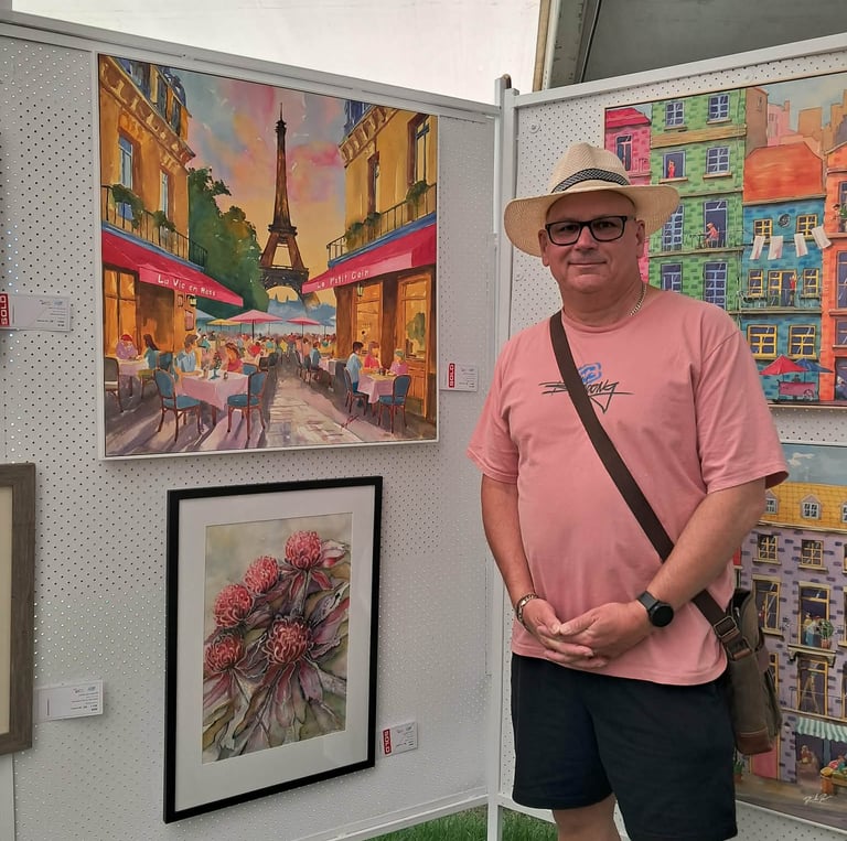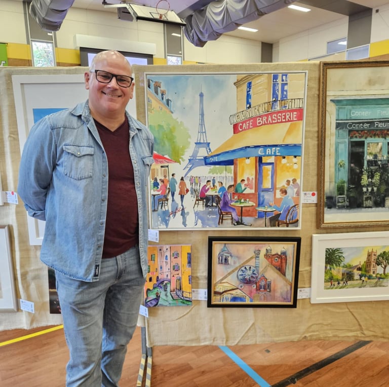 It's taken me a while, I've raised a family, done the hard yards now it's time for me. As an emerging artist, I capture life through watercolor and soft pastel, transforming cityscapes into serene masterpieces that reflect vibrant energy and human connection.